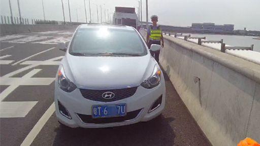 肖警官立即朝珠三角環線尋找該車,幾分鐘后在拱北隧道出口500米處,發現了這輛粵T6��7U號白色現代小車的蹤跡。▼