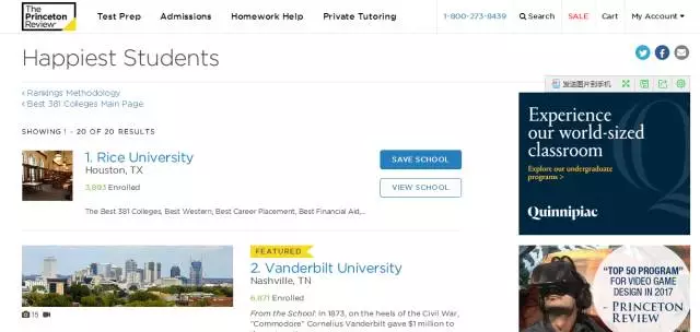 畢業后十年的平均薪資:$87,200;SAT平均分:1501;學生生活評分:A+