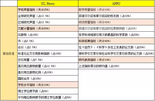US.News和ARWU排名都非常注重學術性。在他們的評分項中,幾乎找不到和學術無關的項目。